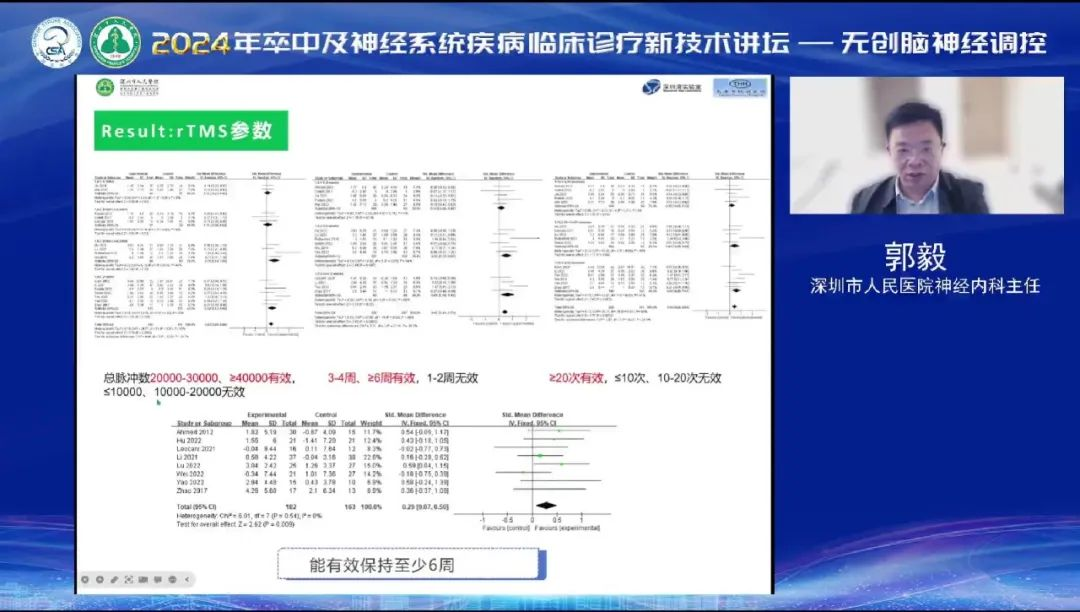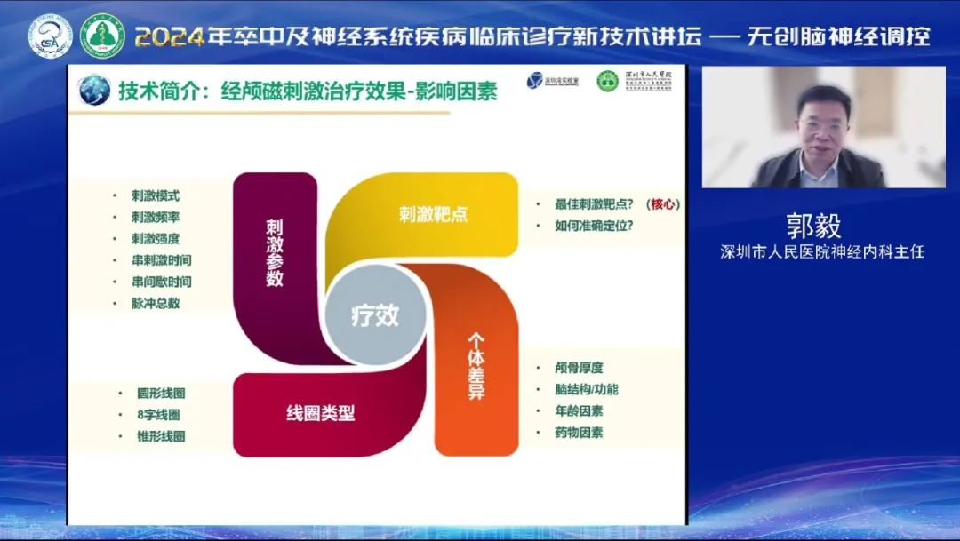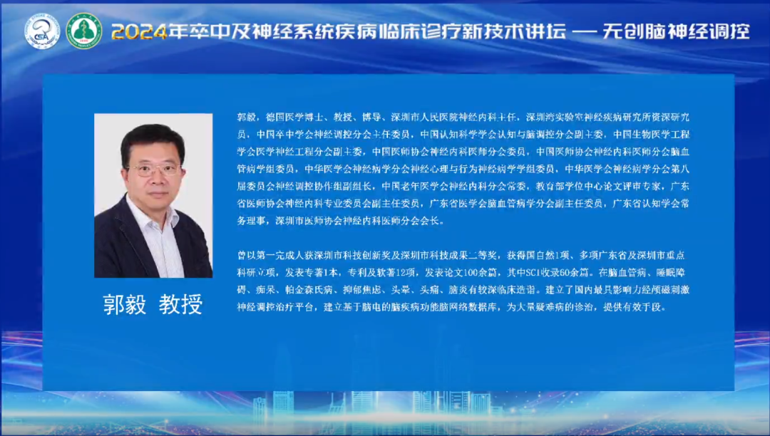 2024122日晚20點,中國卒中學會神經調控分會特聯合深圳市人民醫院及“腦客中國”學術直播平臺,線上舉辦公益講壇——2024年卒中及神經系統疾病臨床診療新技術講壇-無創腦神經調控,深圳市人民醫院神經內科郭毅主任作為第1位講者為大家帶來主題報告。