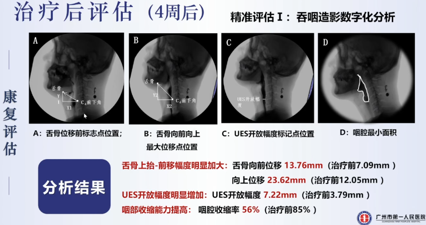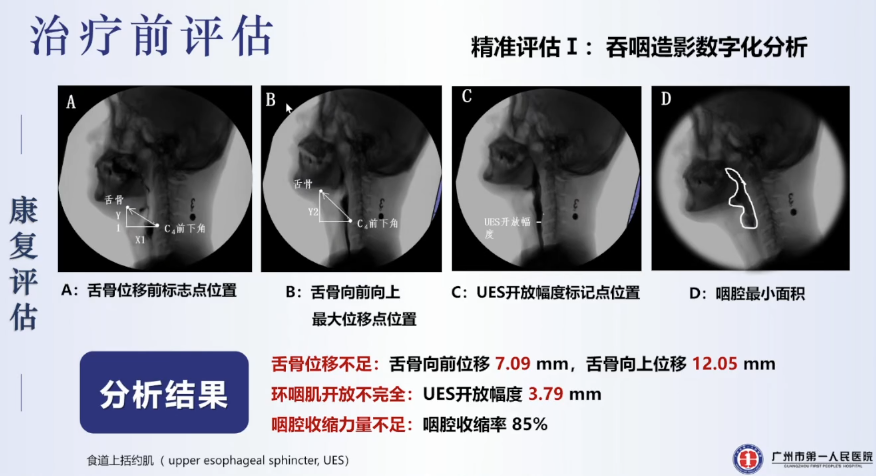 李醫(yī)生團(tuán)隊通過吞咽造影數(shù)字化分析、高分辨率咽腔壓力測定、咽內(nèi)肌群MEP地形圖這三項(xiàng)技術(shù)對患者進(jìn)行了精準(zhǔn)化的康復(fù)評估: