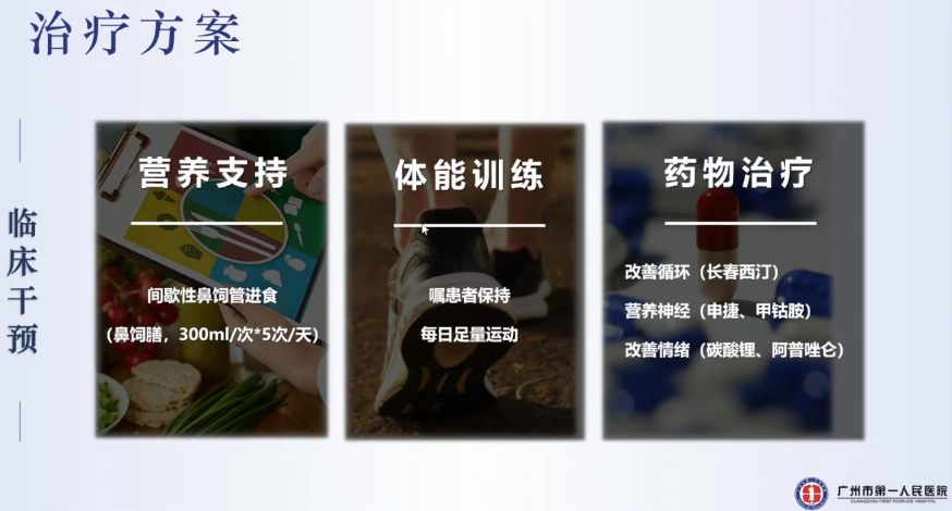 遠(yuǎn)期目標(biāo):爭取1個月內(nèi)脫離鼻飼管,恢復(fù)經(jīng)口進(jìn)食各種性狀食物,改善情緒,回歸家庭及社會。