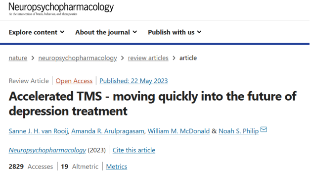2. Reference:?van Rooij, S. J., Arulpragasam, A. R., McDonald, W. M., & Philip, N. S. (2023). Accelerated TMS-moving quickly into the future of depression treatment. Neuropsychopharmacology, 1-10.