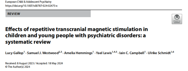 IF=6.4 | Effects of repetitive transcranial magnetic stimulation in children and young people with psychiatric disorders: a systematic review