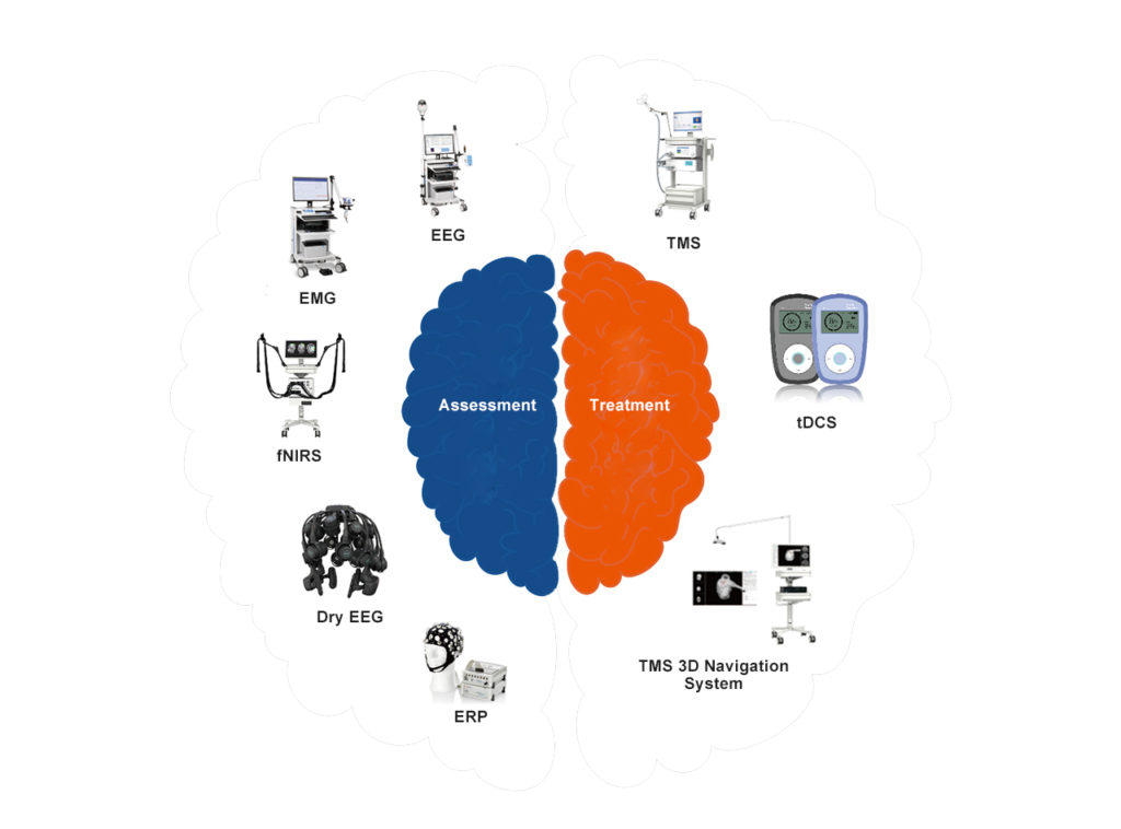 It mainly includes electroencephalogram (EEG), event-related potential (ERP) analyzer, functional near-infrared imaging technology, cognitive function testing and training system, etc. Through these objective examinations, patients are examined before treatment to determine the TMS treatment prescription, and the above-mentioned tests are used to evaluate the therapeutic effect of TMS treatment, which is more convincing than subjective evaluations such as scales.