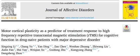 A paper titled “Motor cortical plasticity as a predictor of treatment response to high frequency repetitive transcranial magnetic stimulation (rTMS) for cognitive function in drug-naive patients with major depressive disorder” was published in the Journal of Affective Disorders 2023(Impact factor=6.6).
