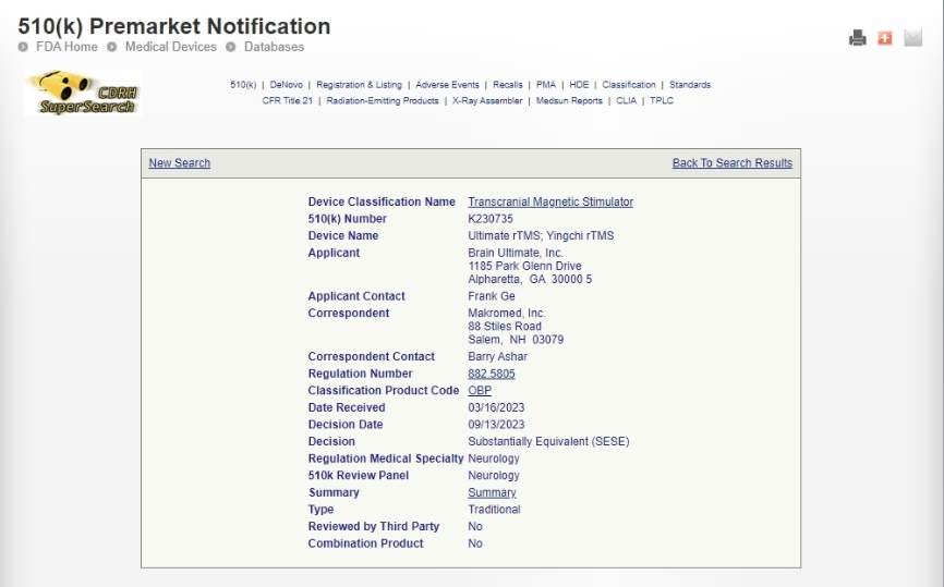 FDA clearance validates the safety and efficacy of our TMS system, making us a trusted provider of high-quality medical devices. This milestone reflects years of rigorous research, development, and collaboration with clinical experts to meet the highest regulatory standards.